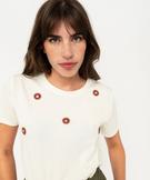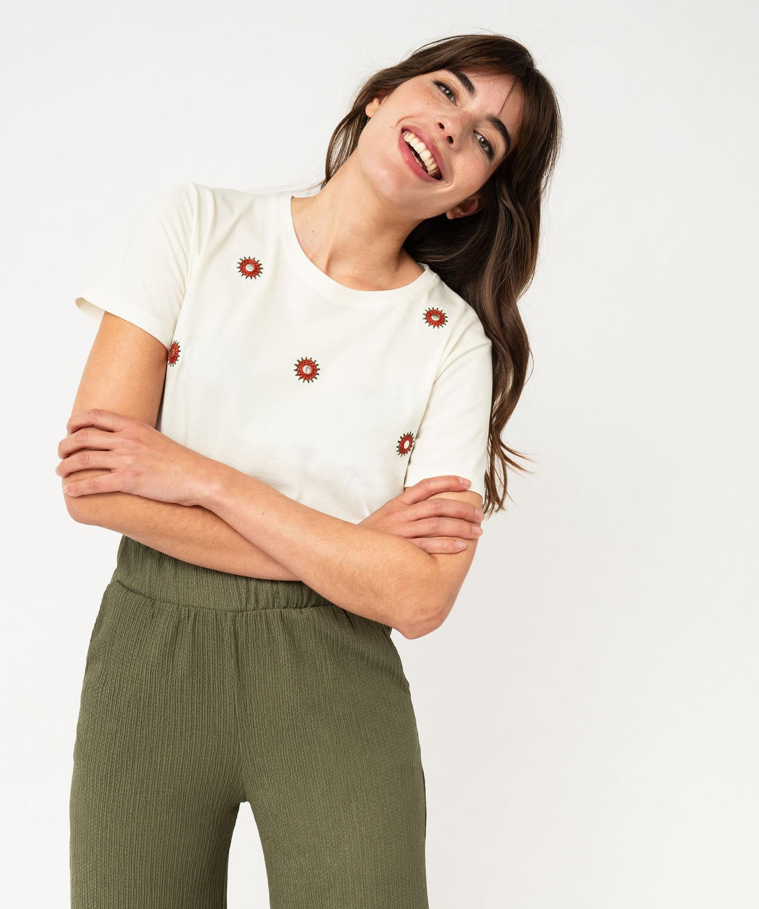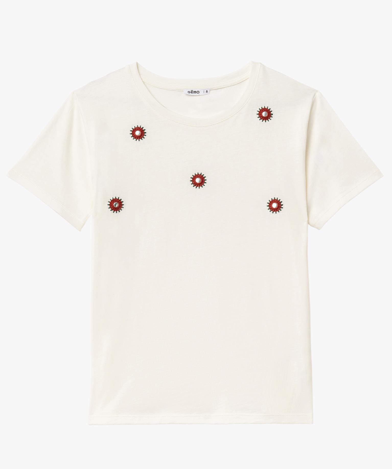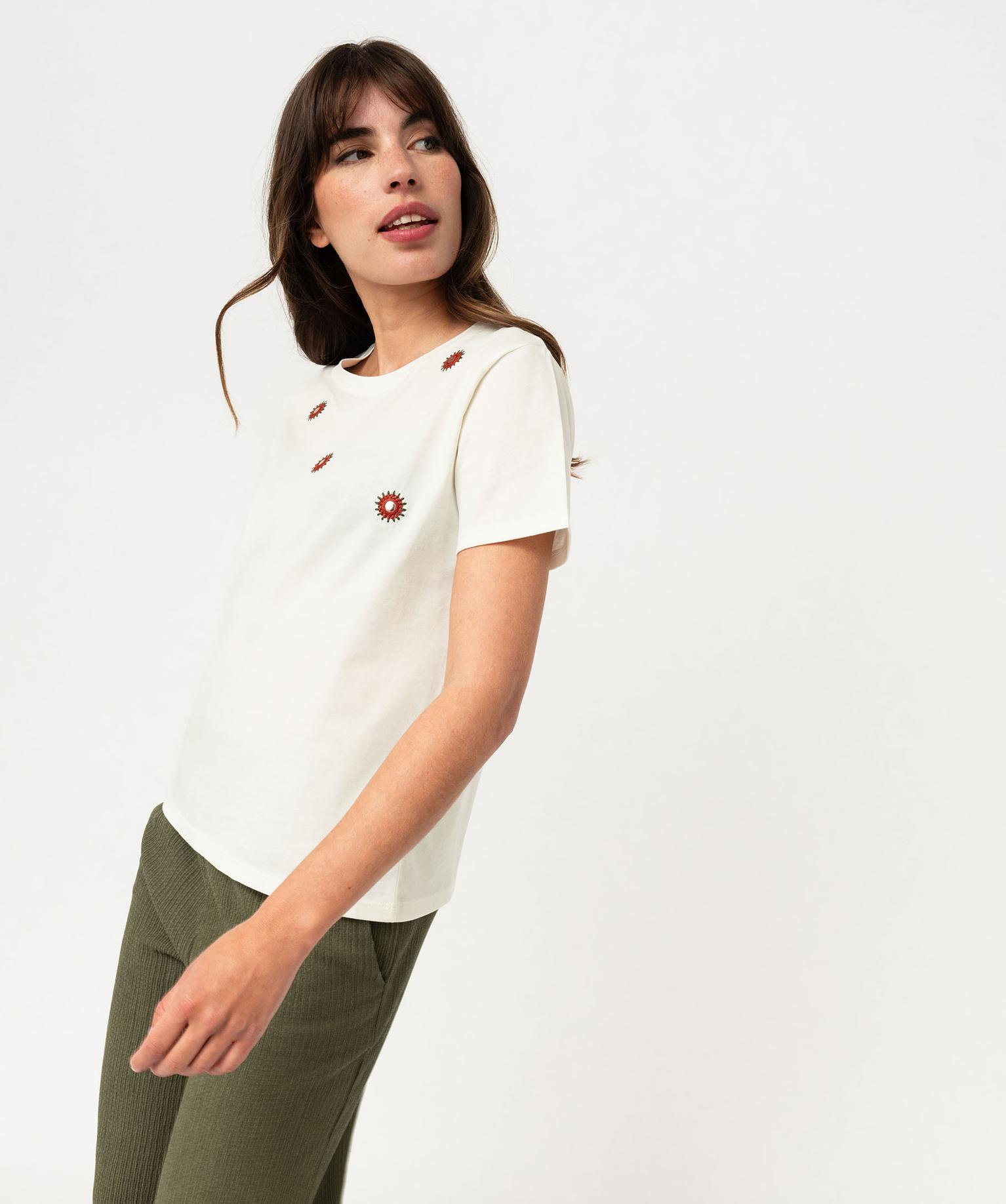 Tee-shirt manches courtes à motifs brodés femme blanc chine