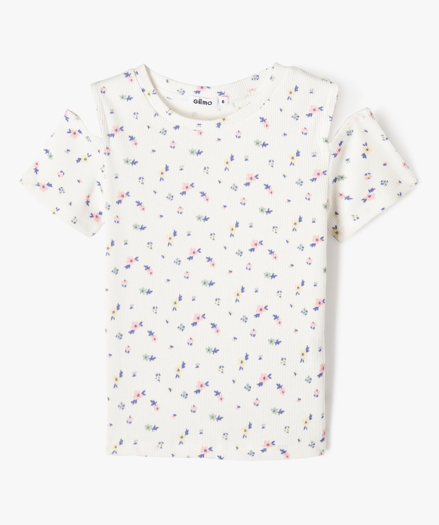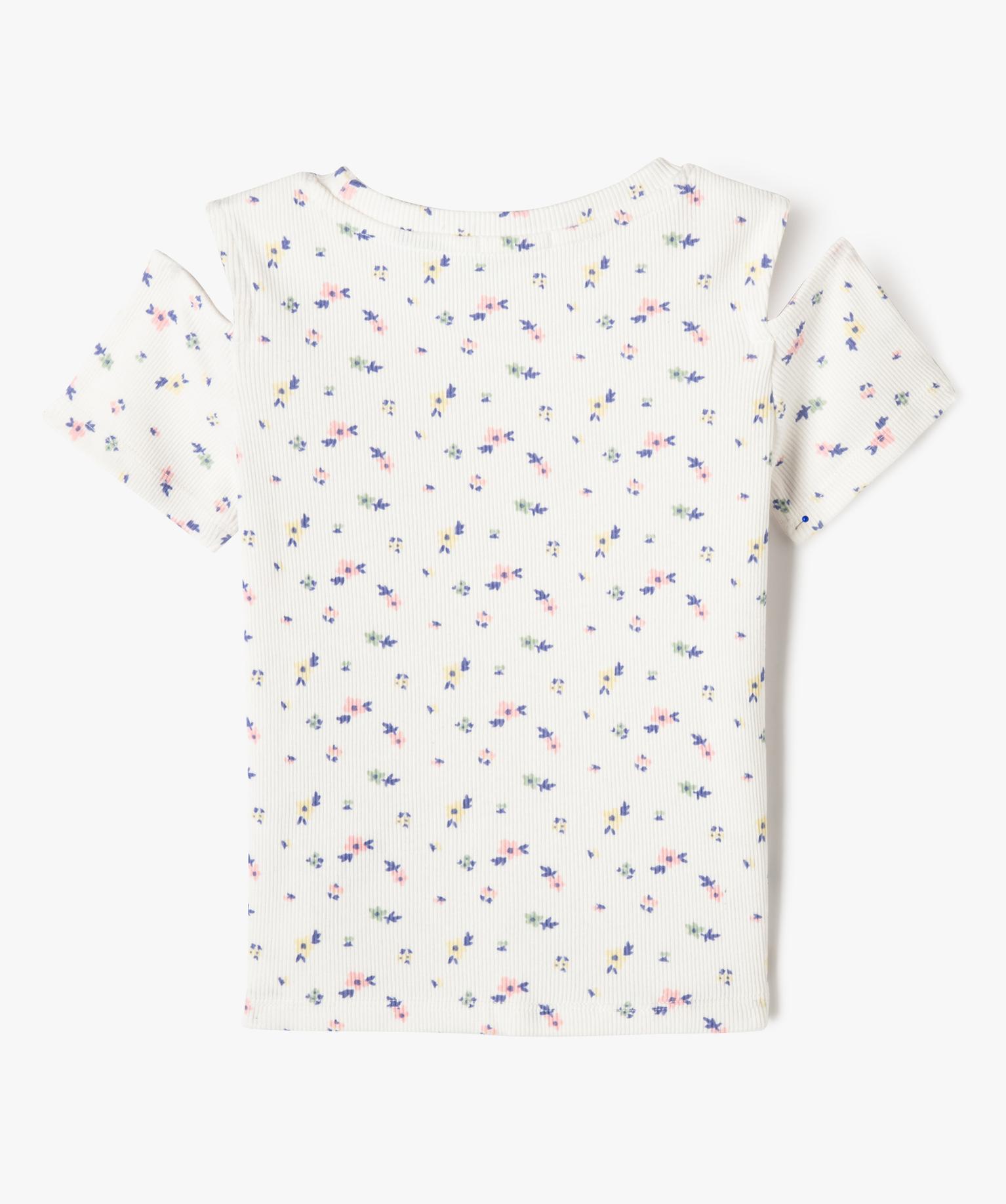 Tee-shirt manches courtes à motifs fleuris avec épaules dénudées fille[MISSING] rose
