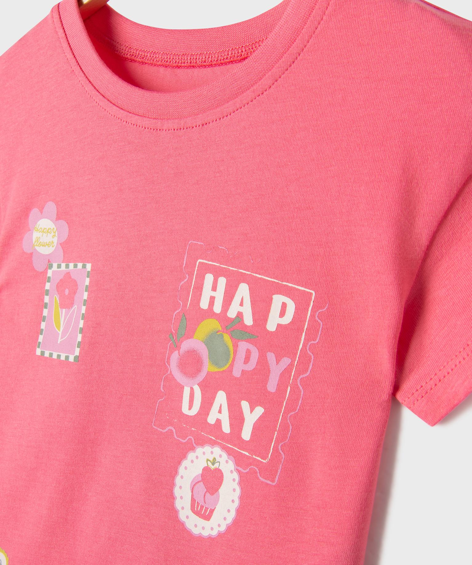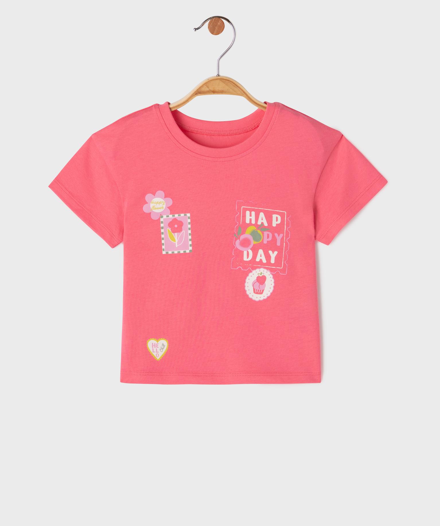 Tee-shirt manches courtes à motifs girly bébé fille rose