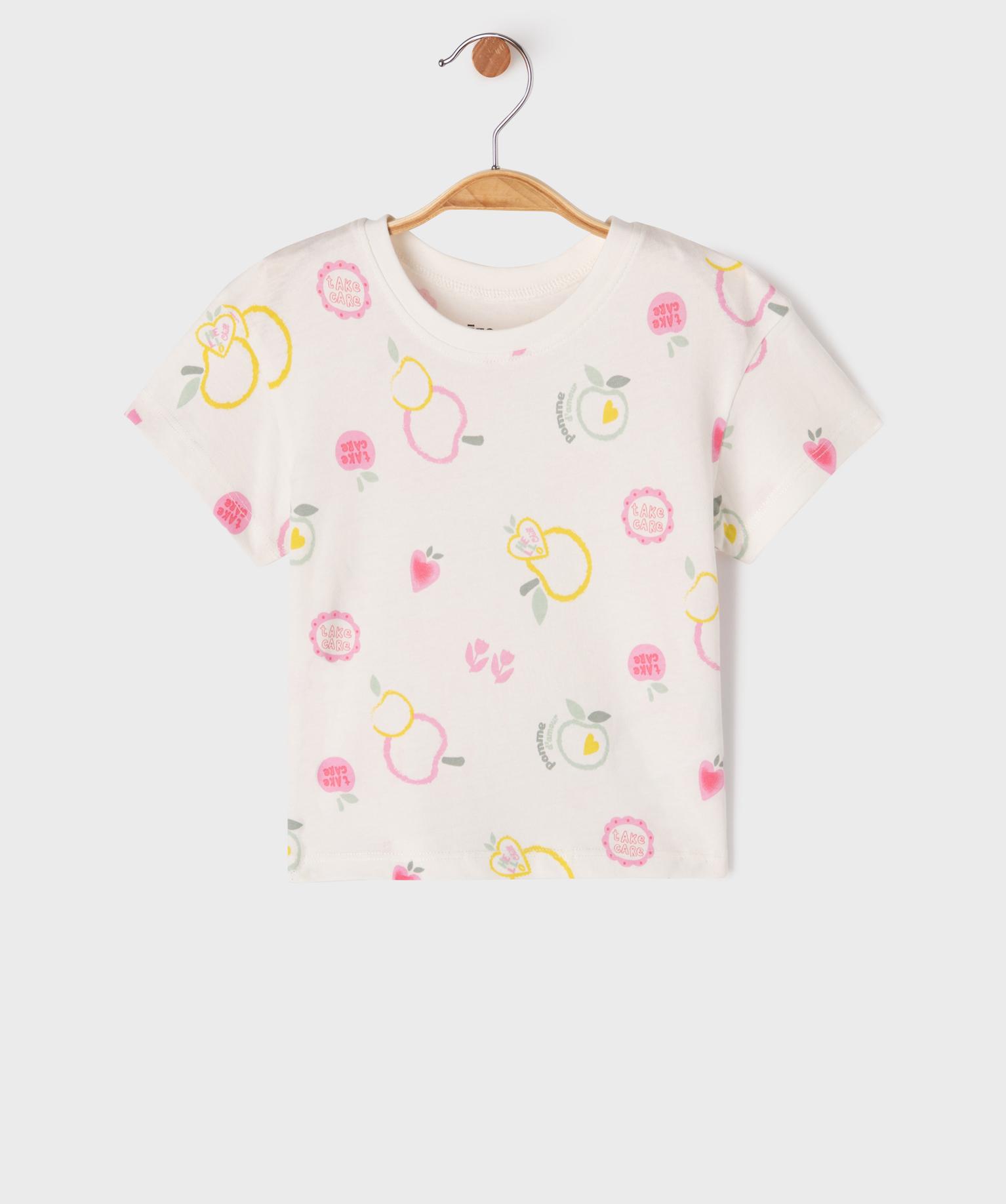Tee-shirt manches courtes à motifs girly bébé fille blanc
