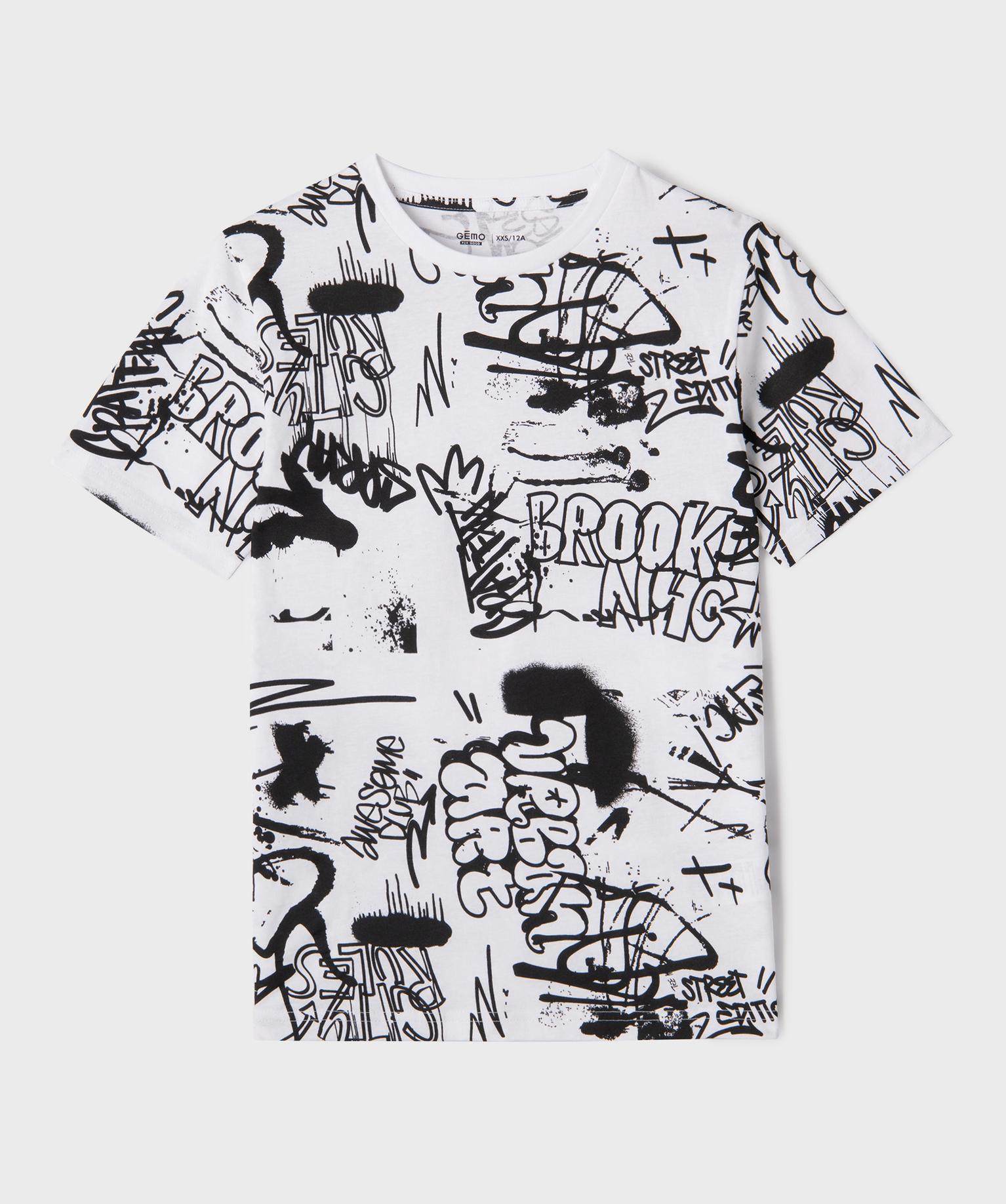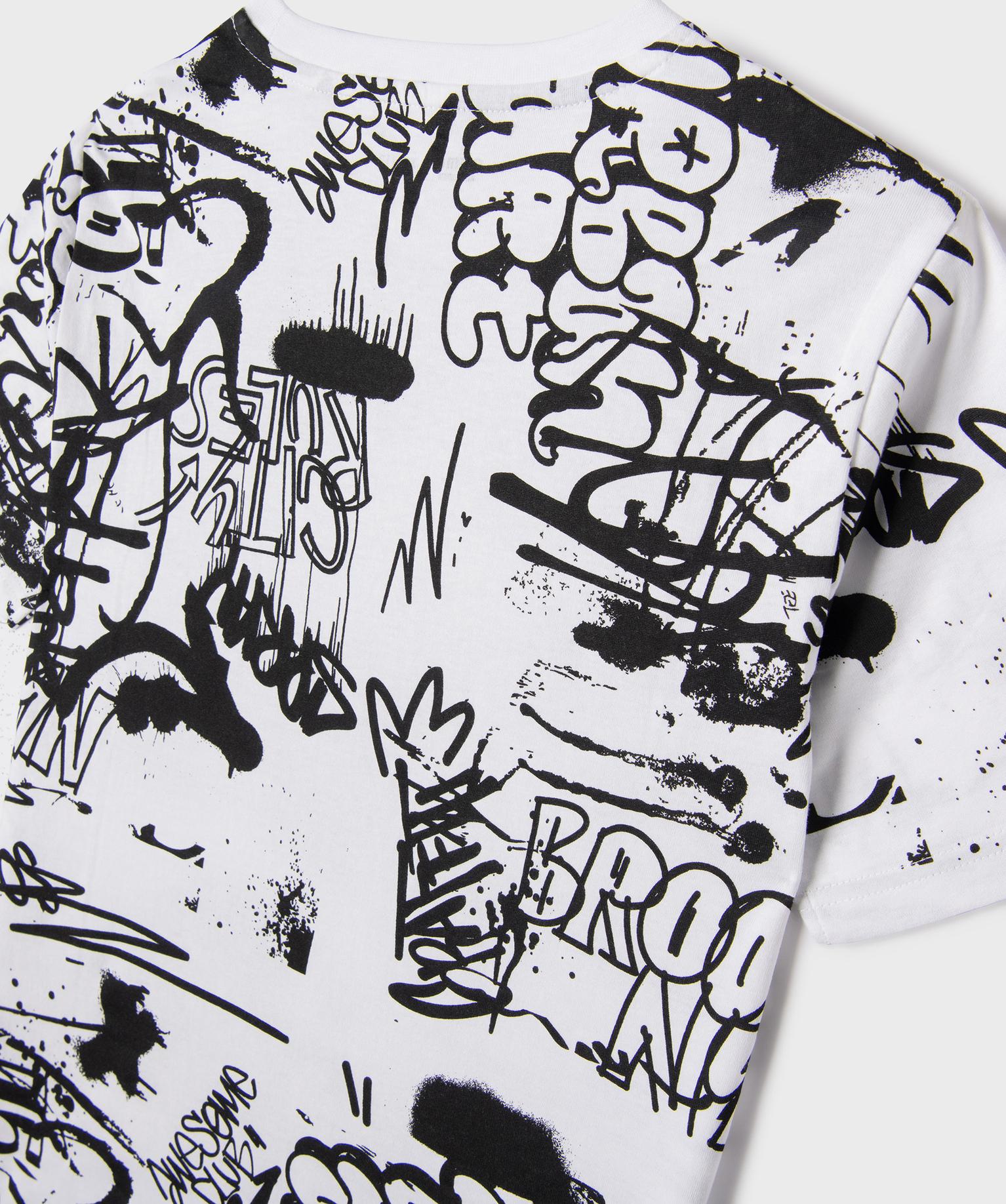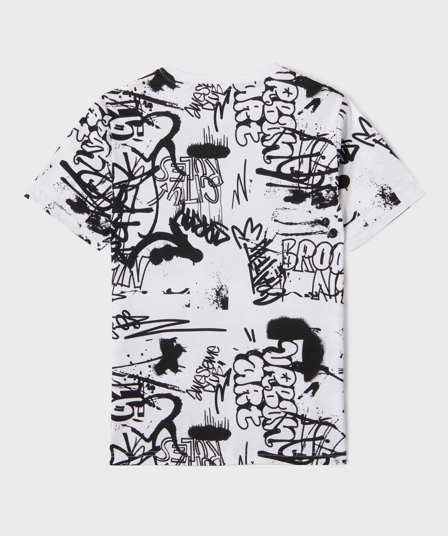 Tee-shirt manches courtes à motifs graffiti garçon blanc