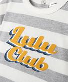 En portant ce joli tee-shirt rayé, les petits garçons seront fiers de faire partie du « Lulu Club », un club réservé aux adeptes de la marque LuluCastagnette. Ce tee-shirt bébé garçon arbore une coupe large pile dans la tendance, des manches courtes avec épaules tombantes et un col rond souligné par un biais. Il est twisté par une inscription colorée sur le buste, ajoutant une touche de style unique. Un tee-shirt à manches courtes à porter en été avec un short et le reste de l’année avec un jean. Fermeture par boutons pression dans le haut du dos.