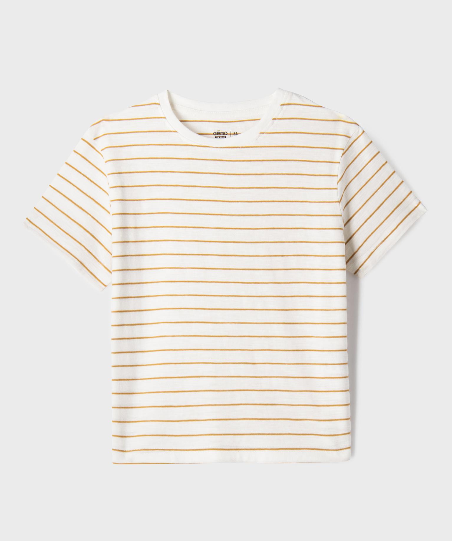 Tee-shirt manches courtes à rayures garçon blanc
