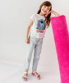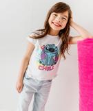 Tee-shirt manches courtes à revers imprimé Stitch fille - Disney blanc chine