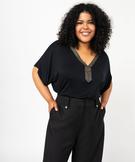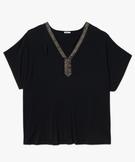 Tee-shirt manches courtes ample avec col V brodé femme grande taille noir
