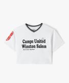 Tee-shirt manches courtes ample et court à col V fille - Camps United blanc