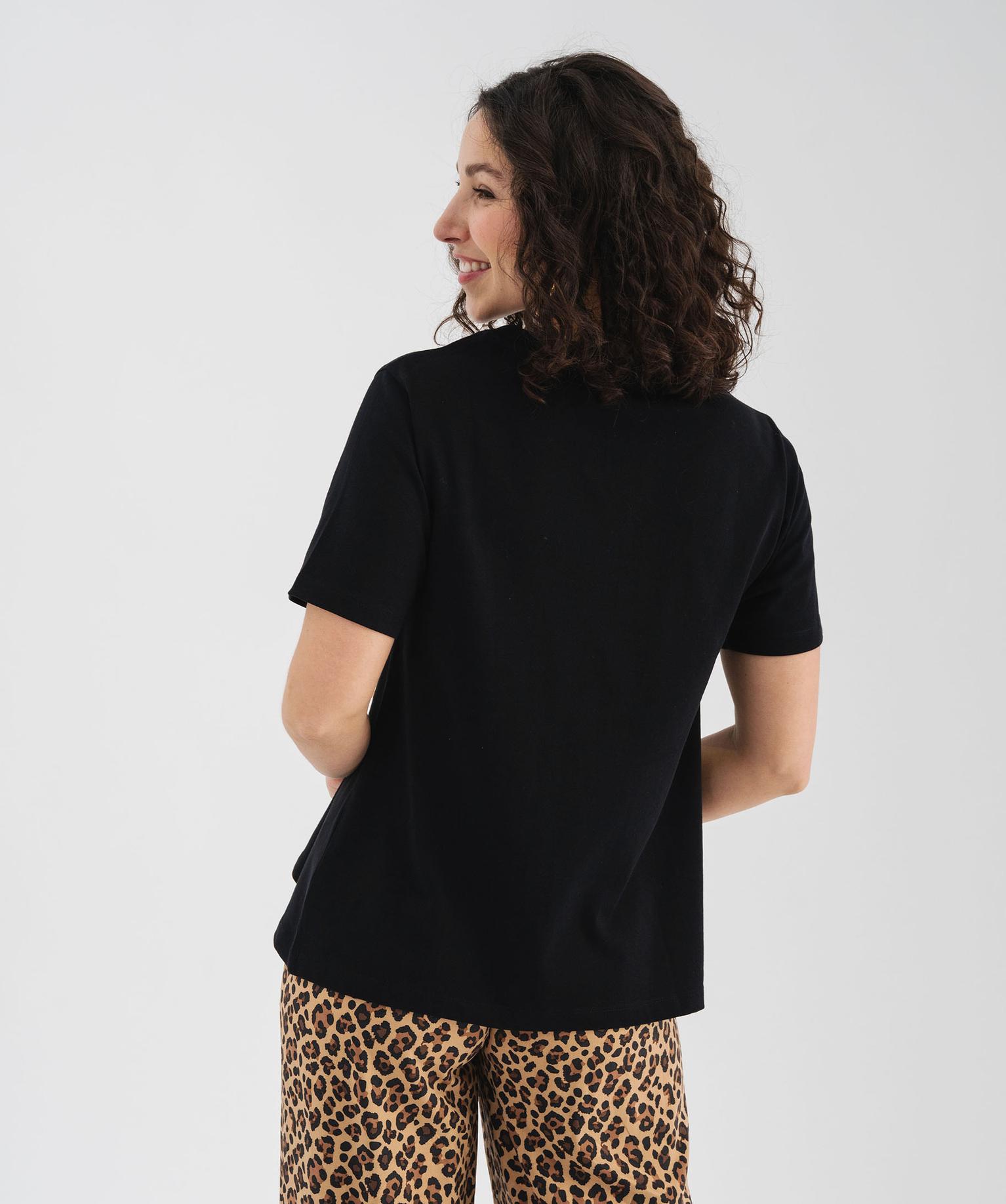 Tee-shirt manches courtes avec bijou sur l’avant femme noir