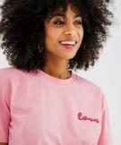 Véritable ode à l’amour, ce tee-shirt femme avec broderie « Love » sur la poitrine incarne la romance et la tendresse en ajoutant une note romantique à tous vos looks décontractés. Un tee-shirt à manches courtes et col rond à la coupe intemporelle facile à porter. Un top 100% coton qui se marie parfaitement avec un jean, une jupe ou un pantalon fluide pour un style à la fois sobre et élégant. Un tee-shirt Love parfait pour célébrer l’amour au quotidien !