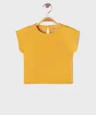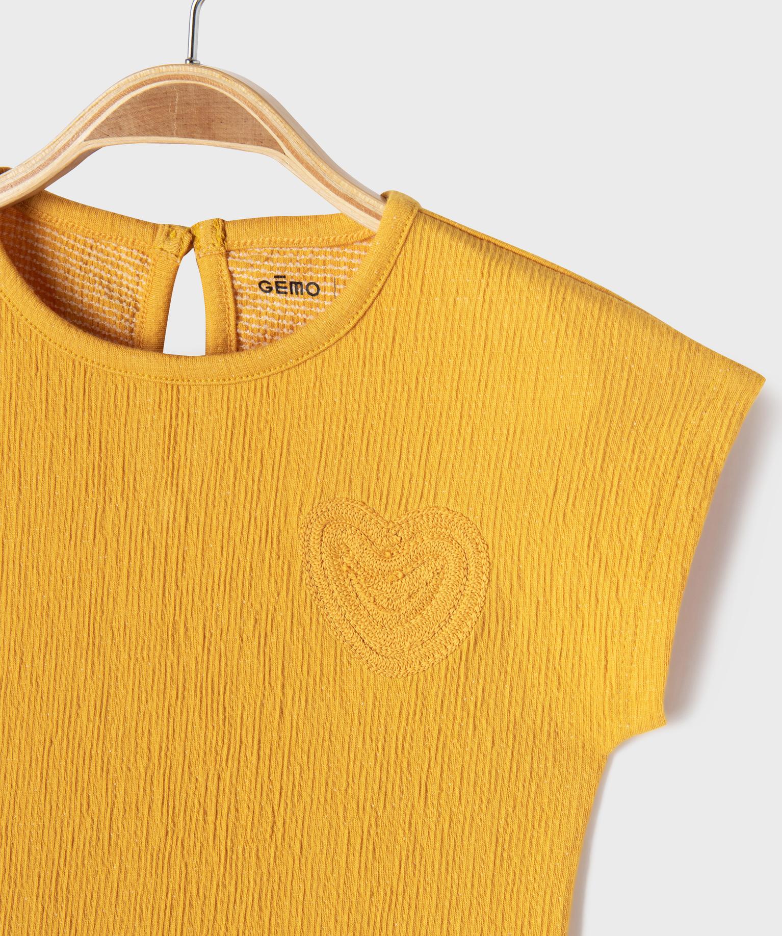 Tee-shirt manches courtes avec broderie poitrine bébé fille jaune fonce