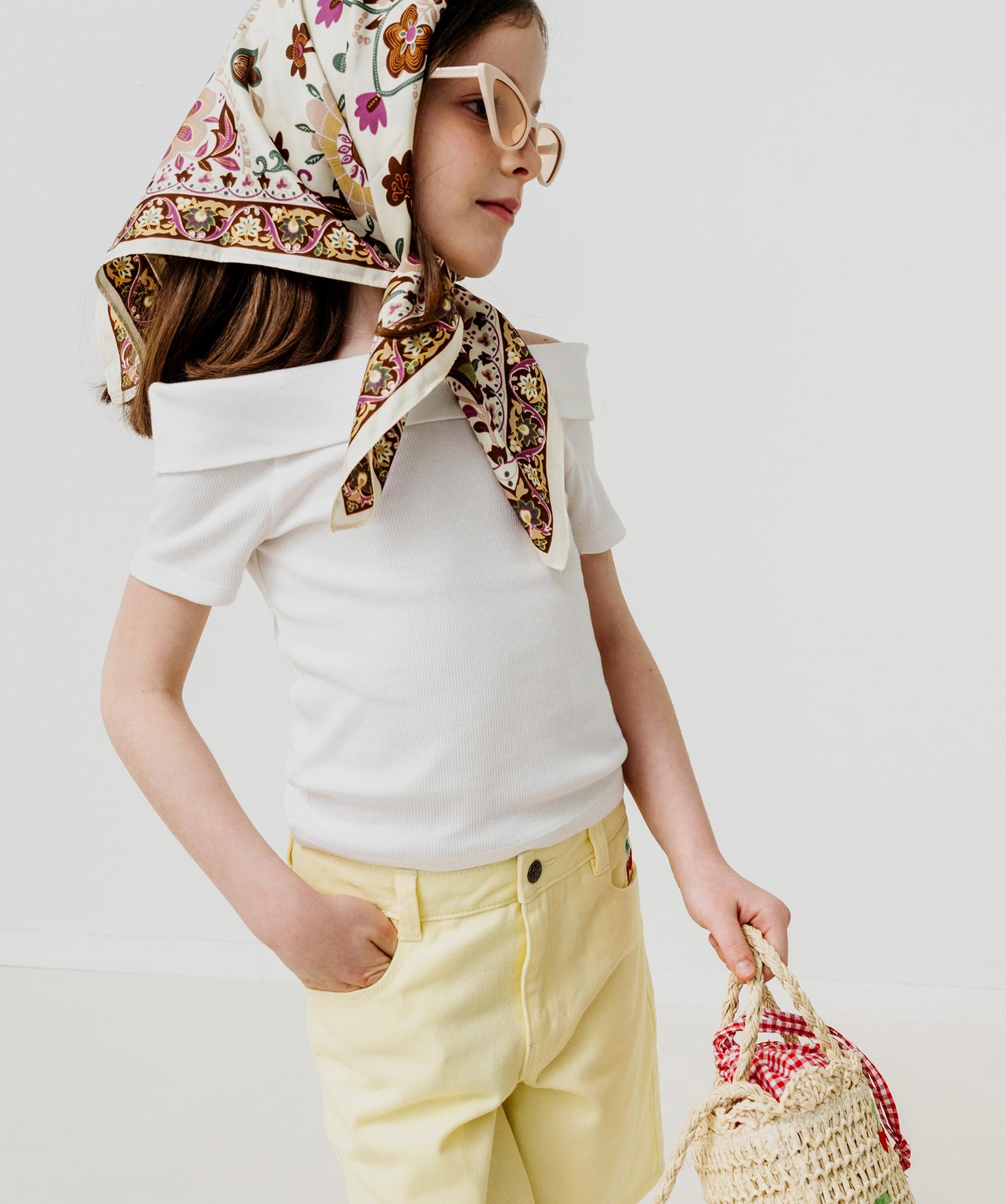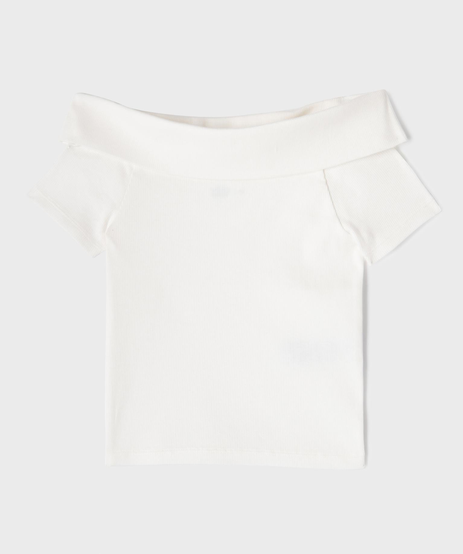 Tee-shirt manches courtes avec col Bardot fille blanc