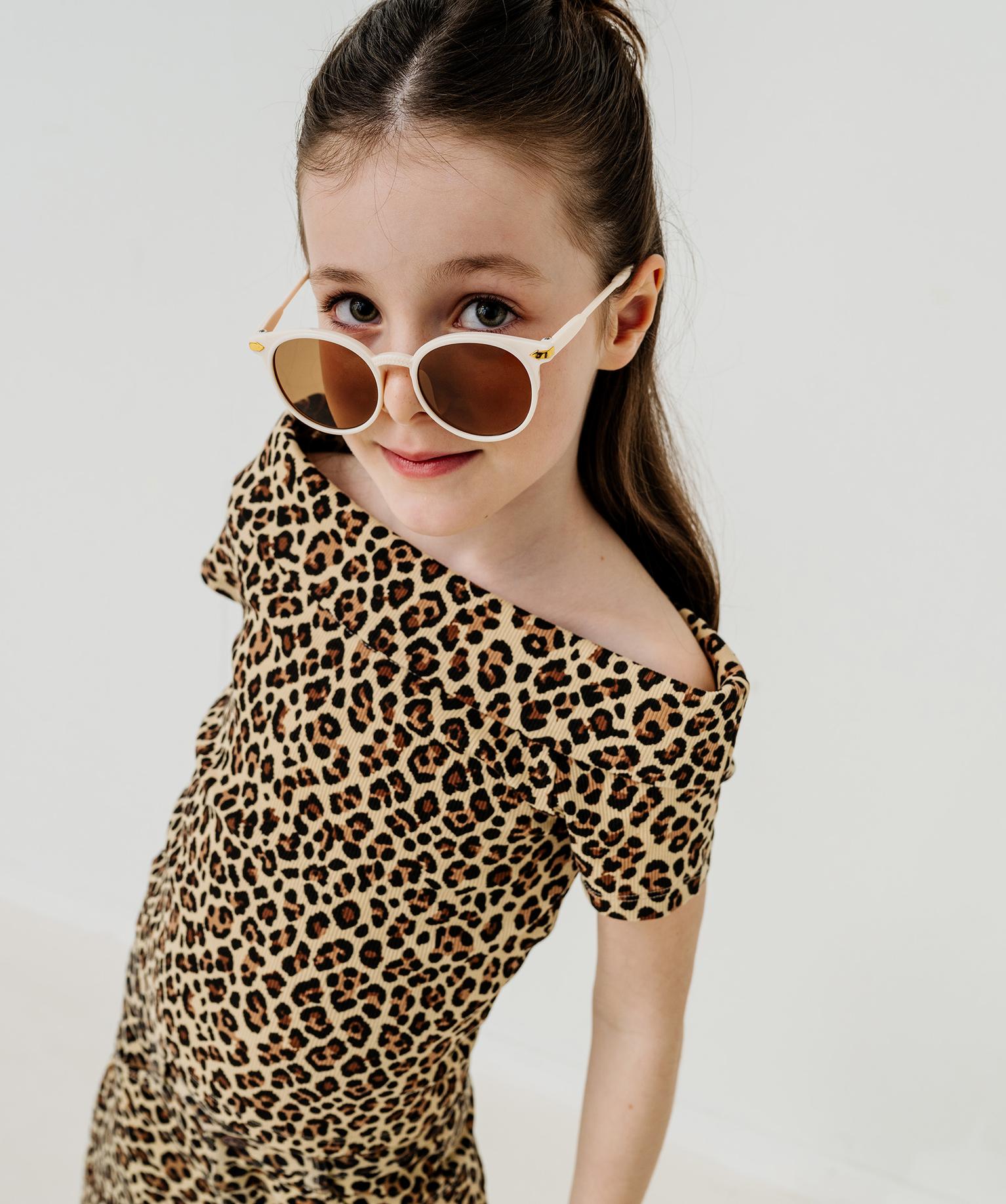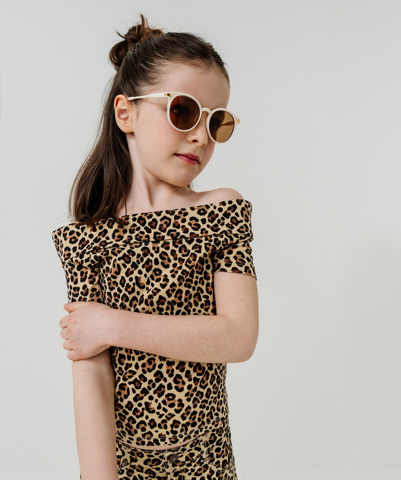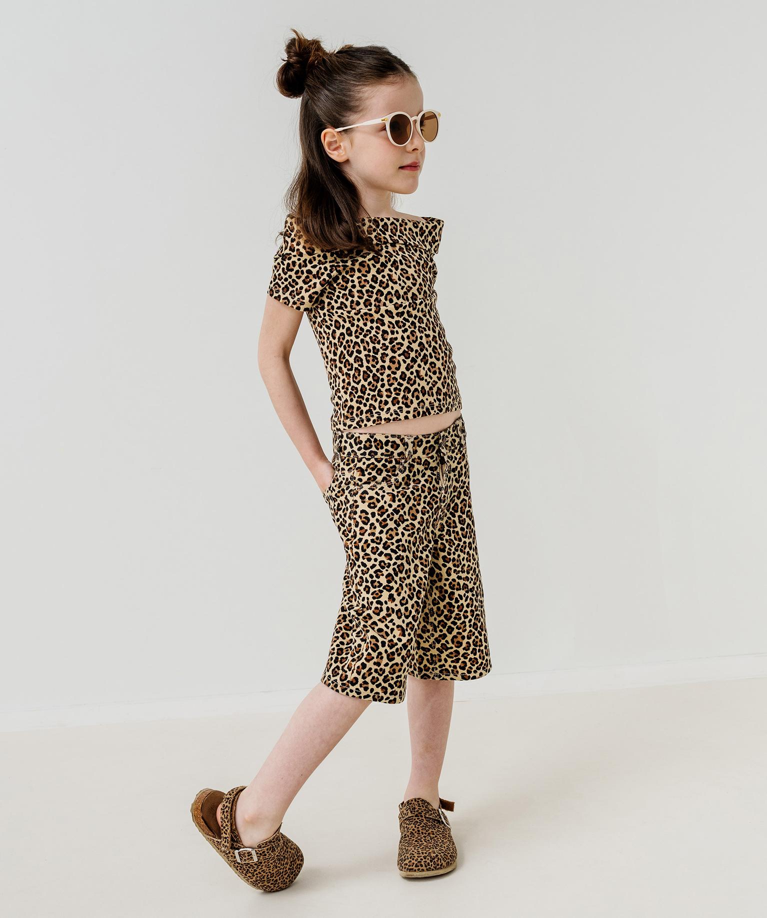 Tee-shirt manches courtes avec col Bardot fille imprime leopard