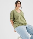 Tee-shirt manches courtes avec détails brodés femme grande taille[MISSING] kaki