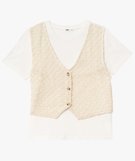 Tee-shirt manches courtes avec gilet sans manches effet 2-en-1 femme ecru