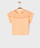Tee-shirt manches courtes avec haut brodé bébé fille orange clair