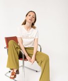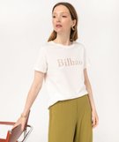 Tee-shirt manches courtes avec inscription brodée femme ecru