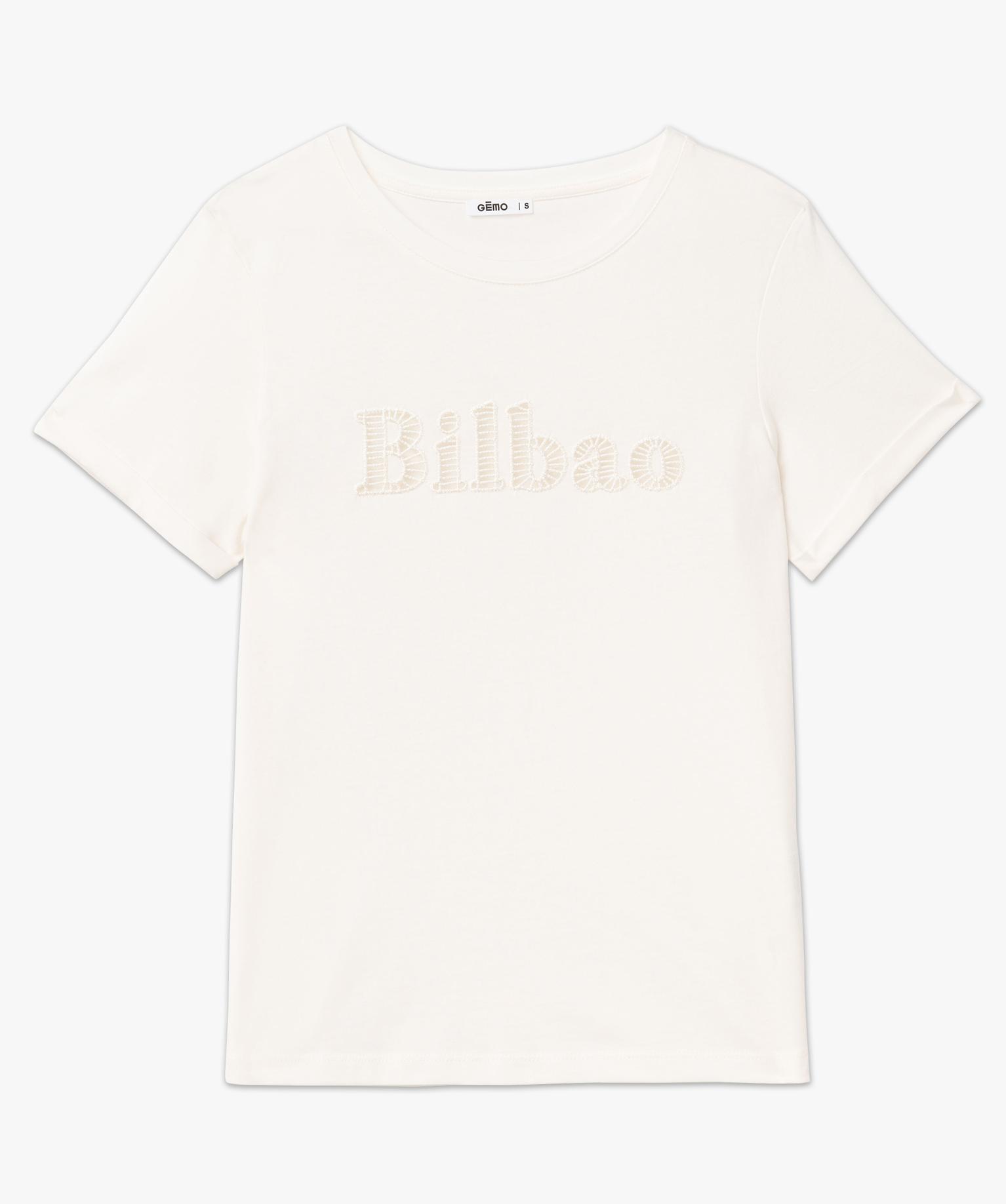 Tee-shirt manches courtes avec inscription brodée femme blanc chine