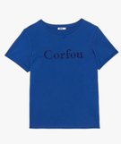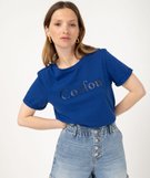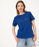 Tee-shirt manches courtes avec inscription brodée femme bleu