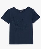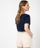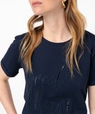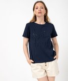Tee-shirt manches courtes avec inscription brodée femme bleu