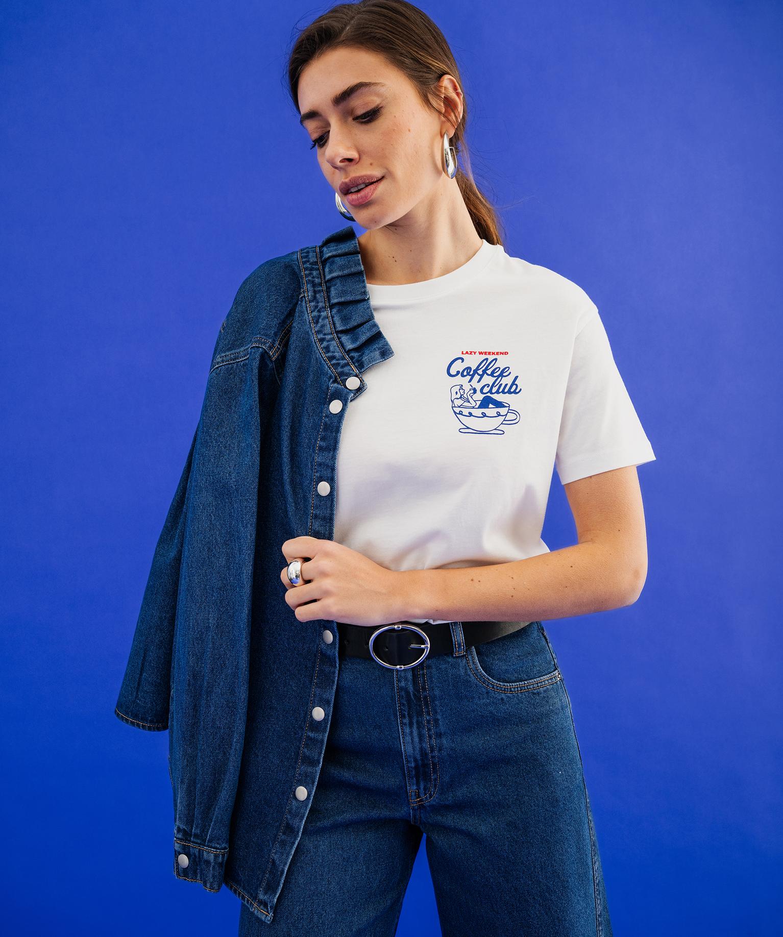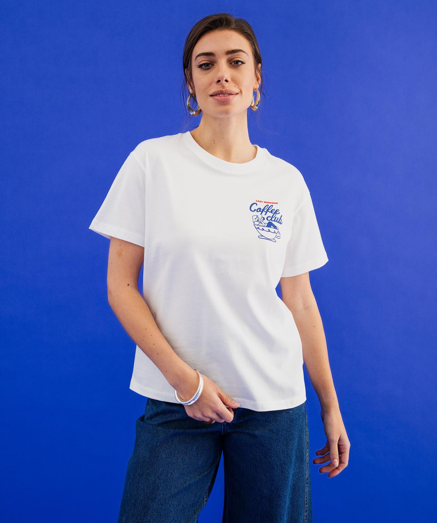 Ce tee-shirt femme est une véritable invitation à la détente et au farniente ! Sa coupe ample et confortable assure une grande liberté de mouvement au quotidien. Il se distingue par une inscription sur la poitrine et une autre au dos en version XXL, célébrant toutes deux l’oisiveté et la douceur de vivre. Ce tee-shirt à manches courtes et col rond se porte avec un jean et des baskets, comme avec un pantalon homewear fluide et des chaussons douillets.