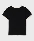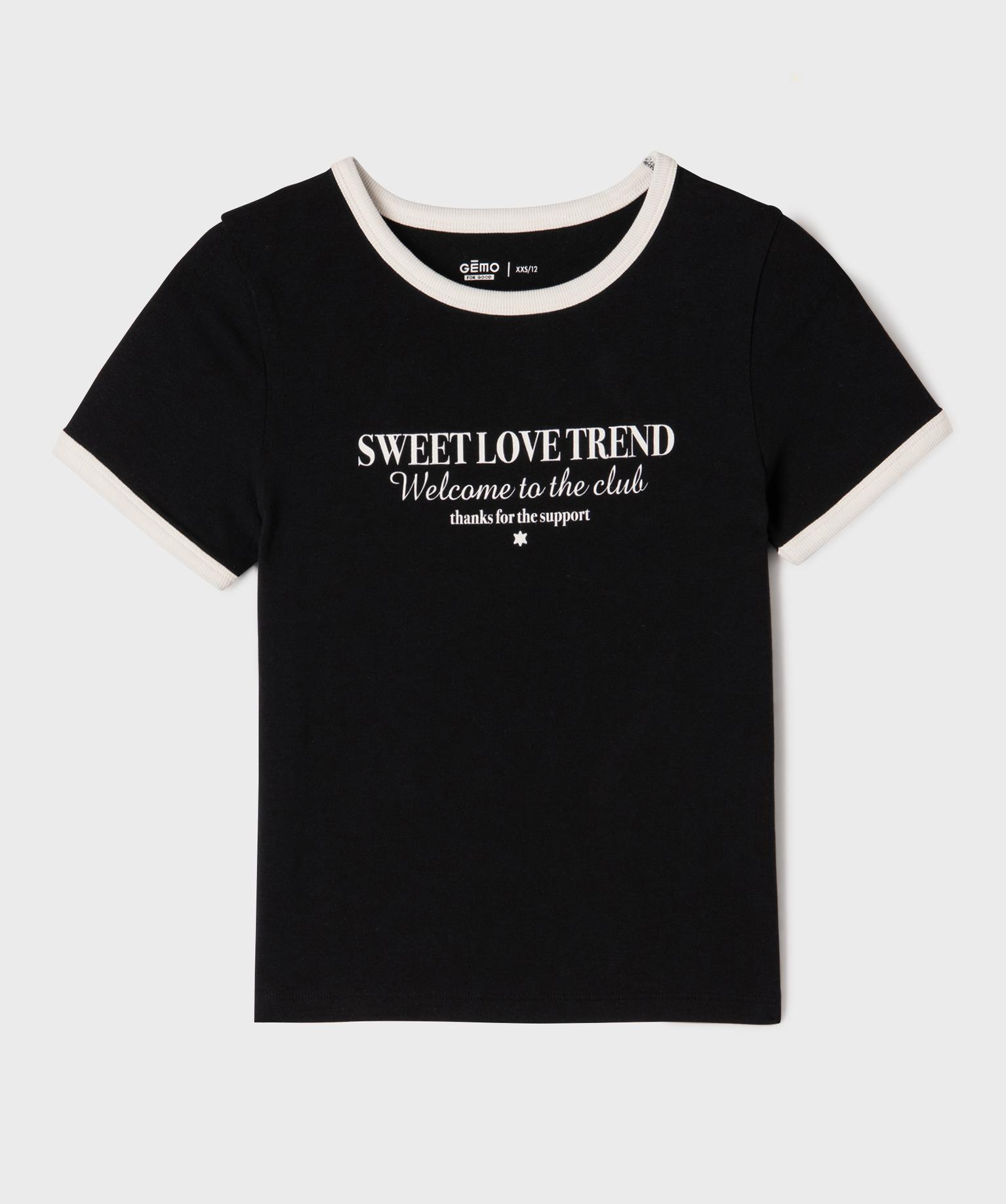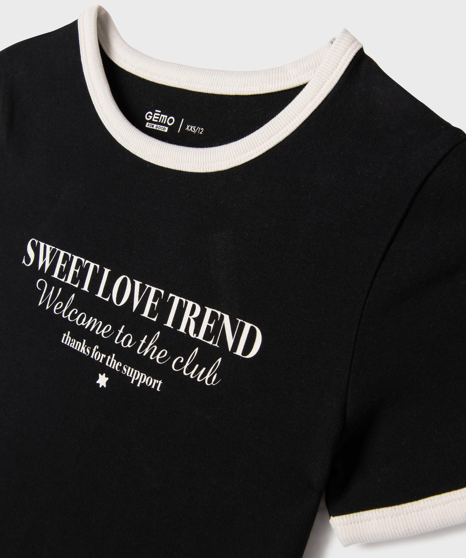 Tee-shirt manches courtes avec inscription et finitions contrastantes fille noir