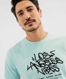 Tee-shirt manches courtes avec inscription graffiti homme bleu turquoise