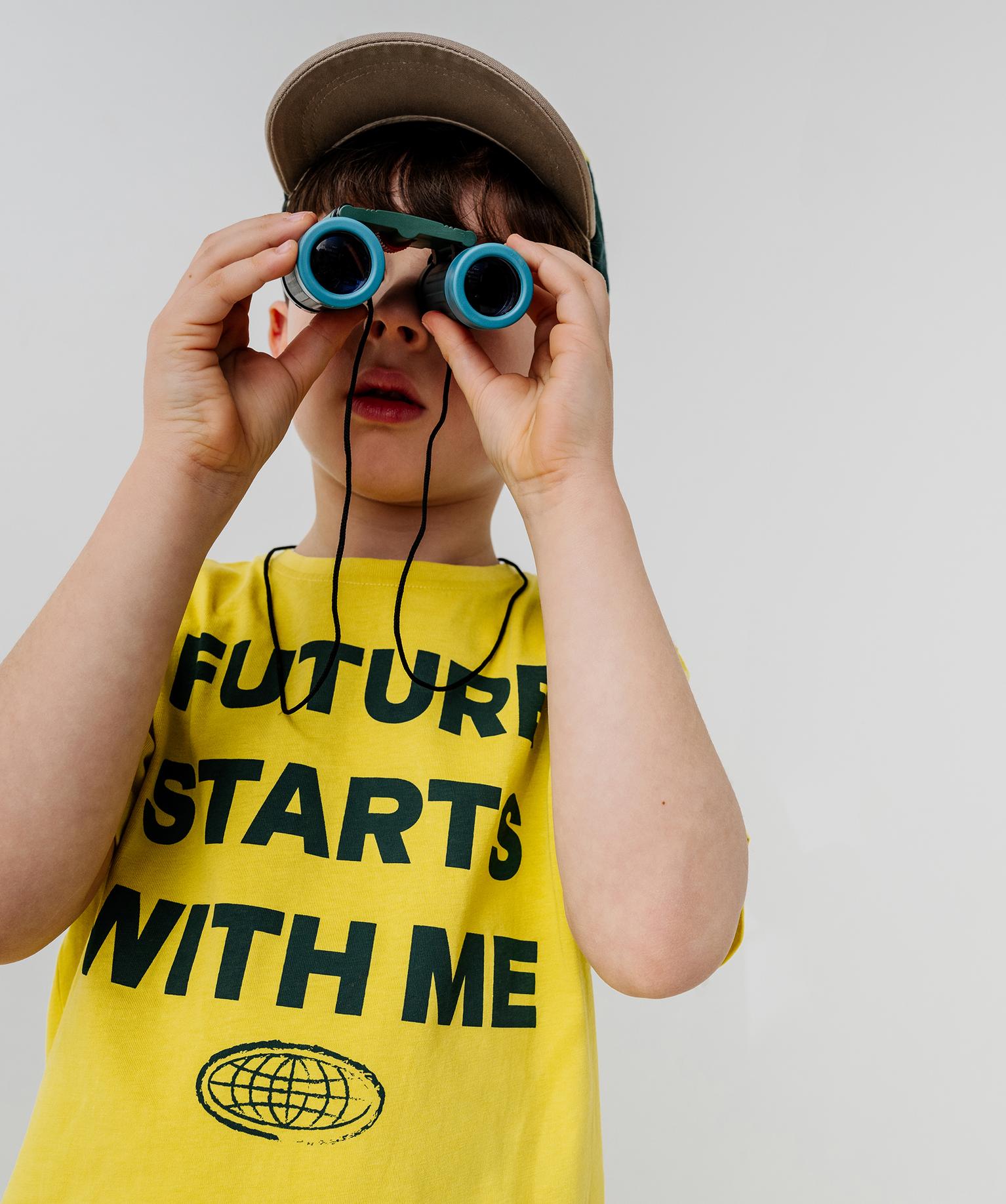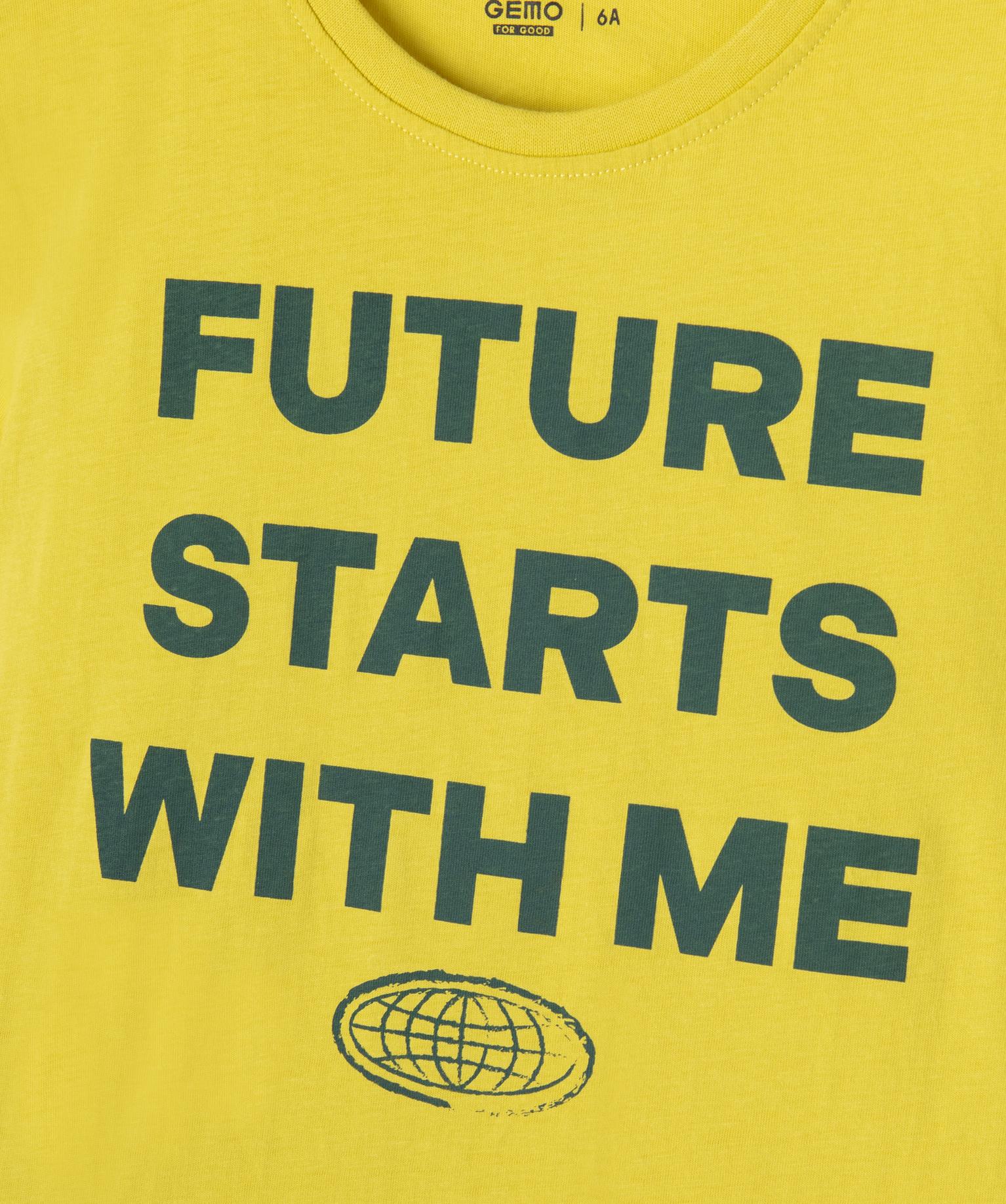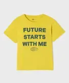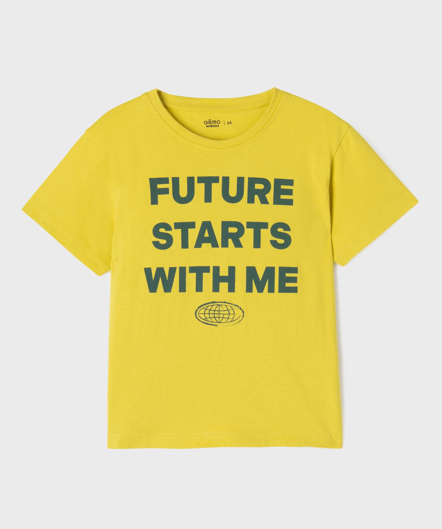 Tee-shirt manches courtes avec inscription sur l’avant garçon jaune