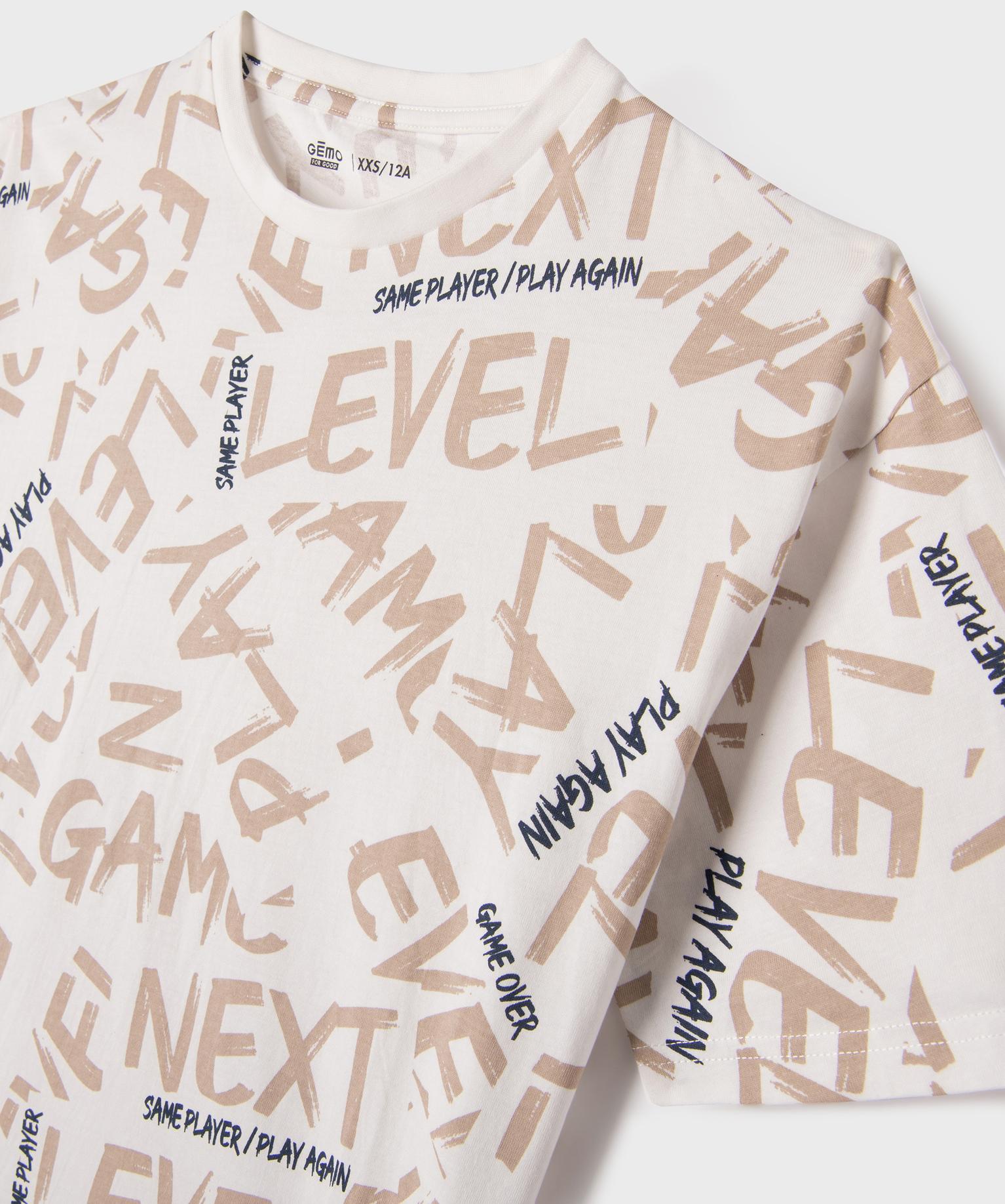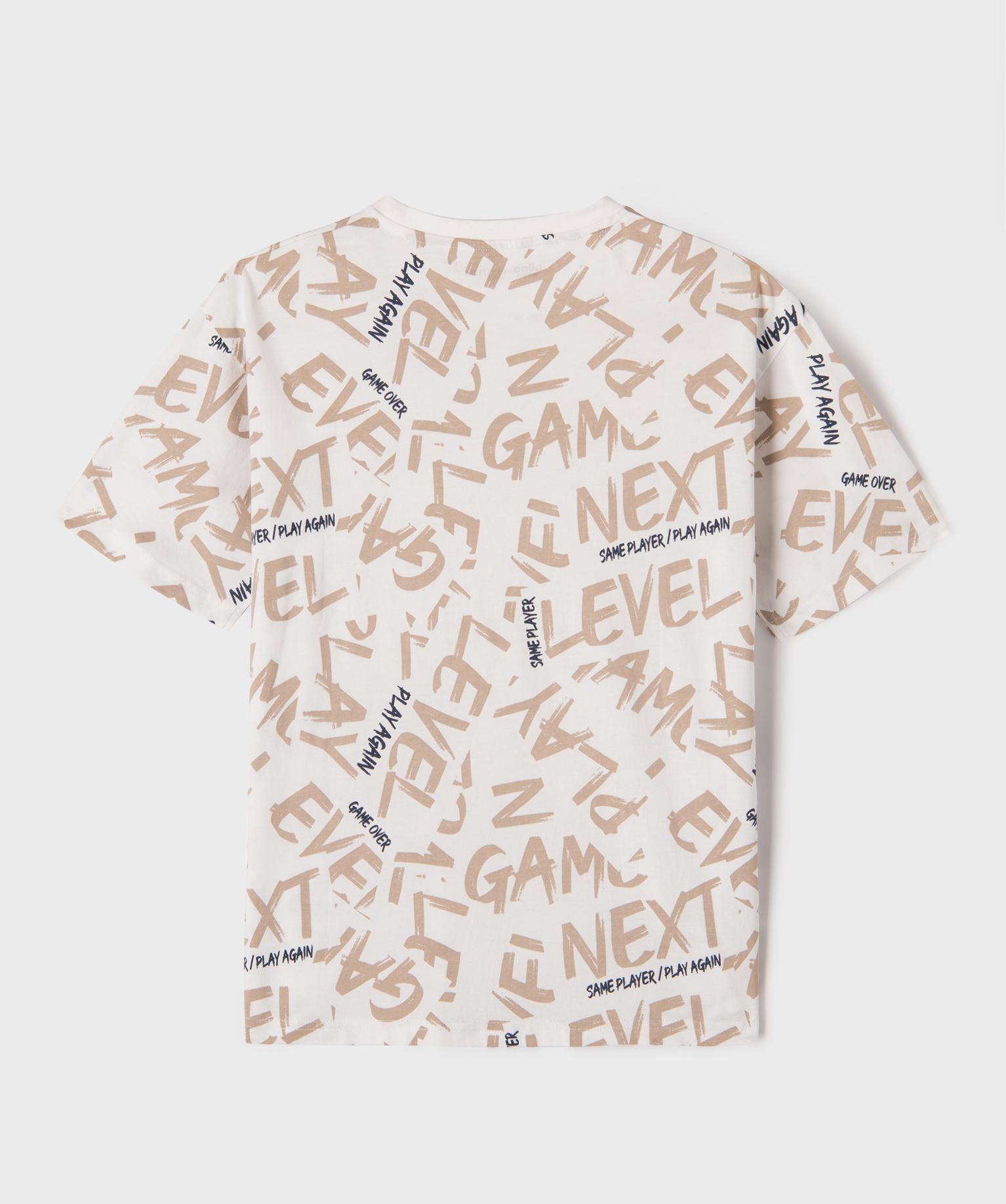 Tee-shirt manches courtes avec inscriptions gaming garçon beige