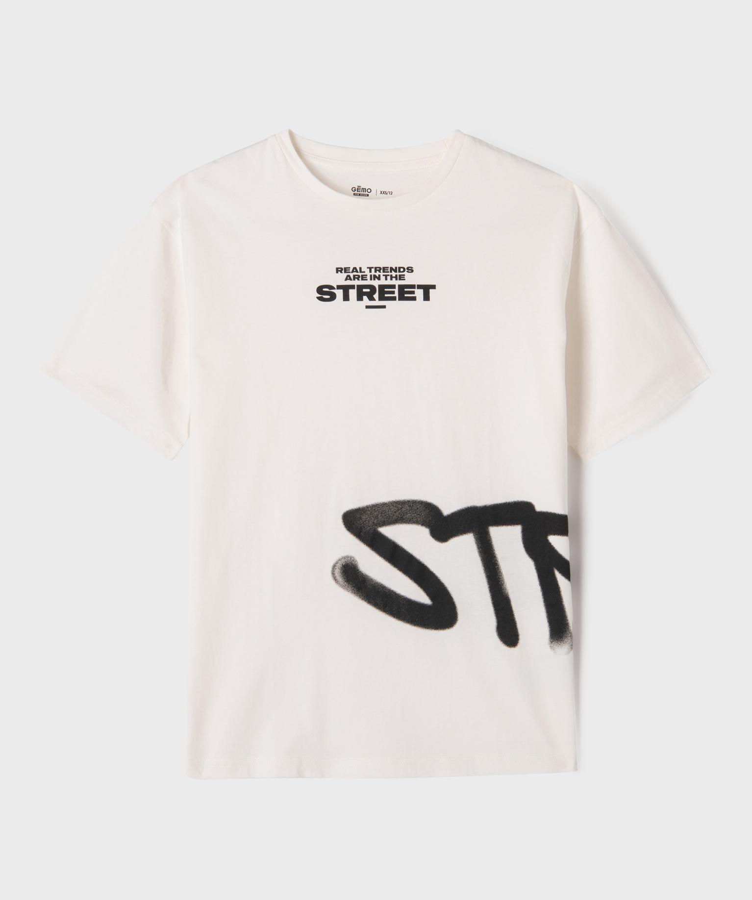 Tee-shirt manches courtes avec inscriptions graffiti garçon blanc