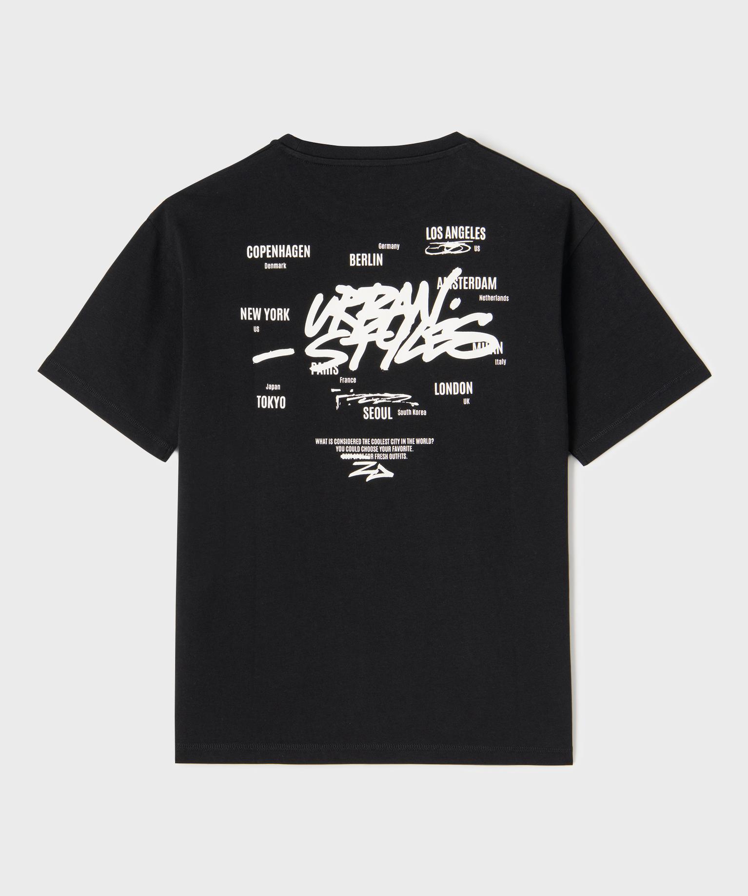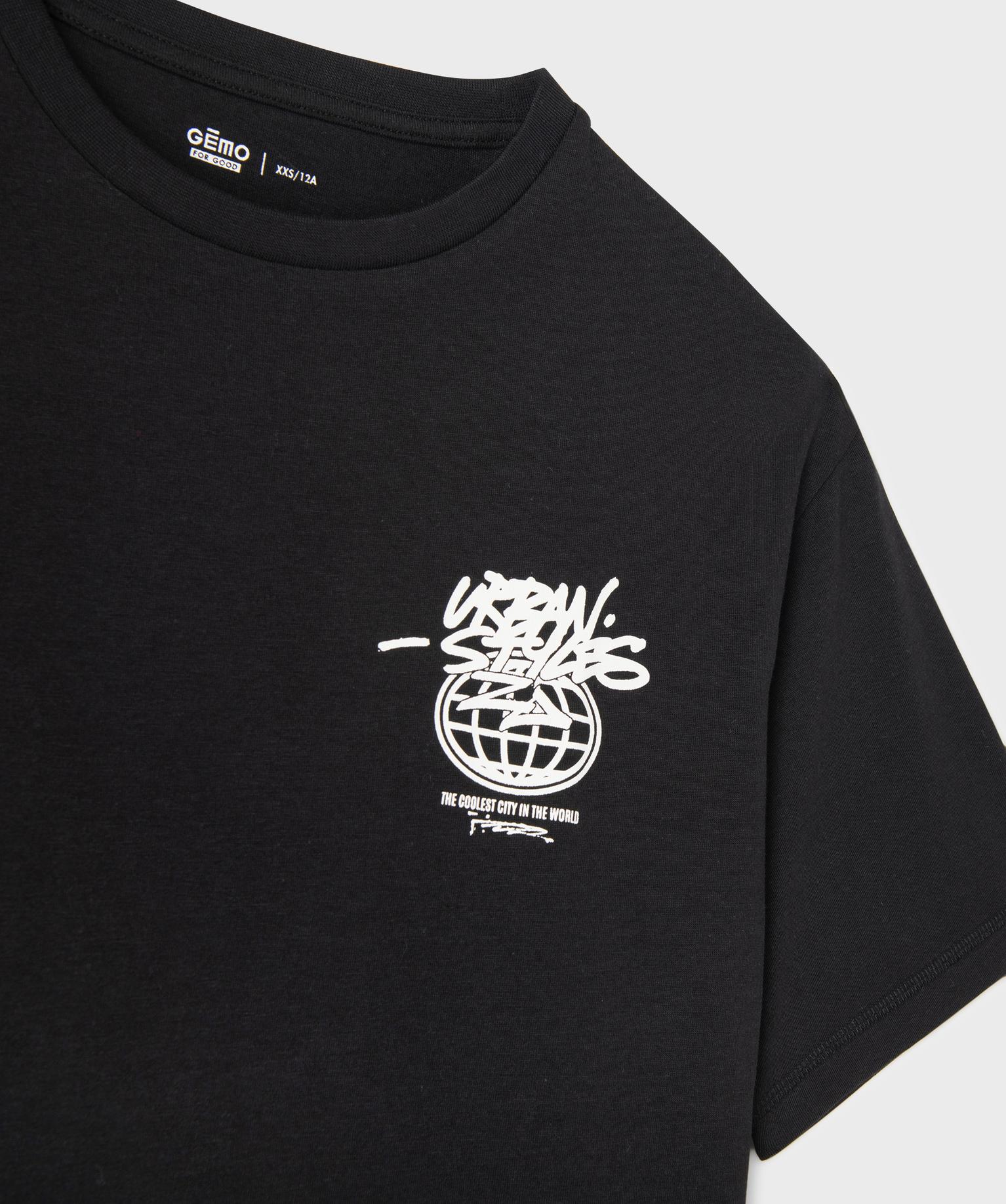 Tee-shirt manches courtes avec inscriptions urbaines garçon noir