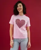Tee-shirt manches courtes avec motif coeur velours femme rose