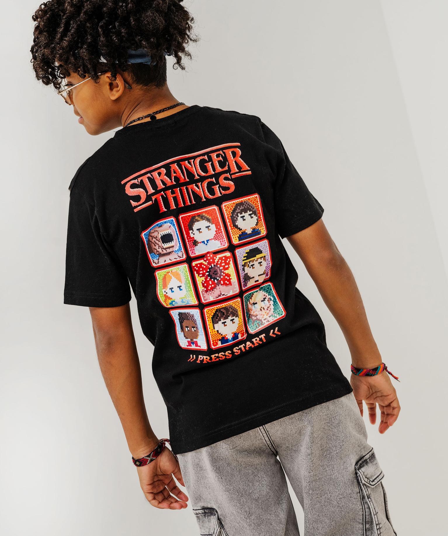 Tee-shirt manches courtes avec motif dos garçon - Stranger Things noir