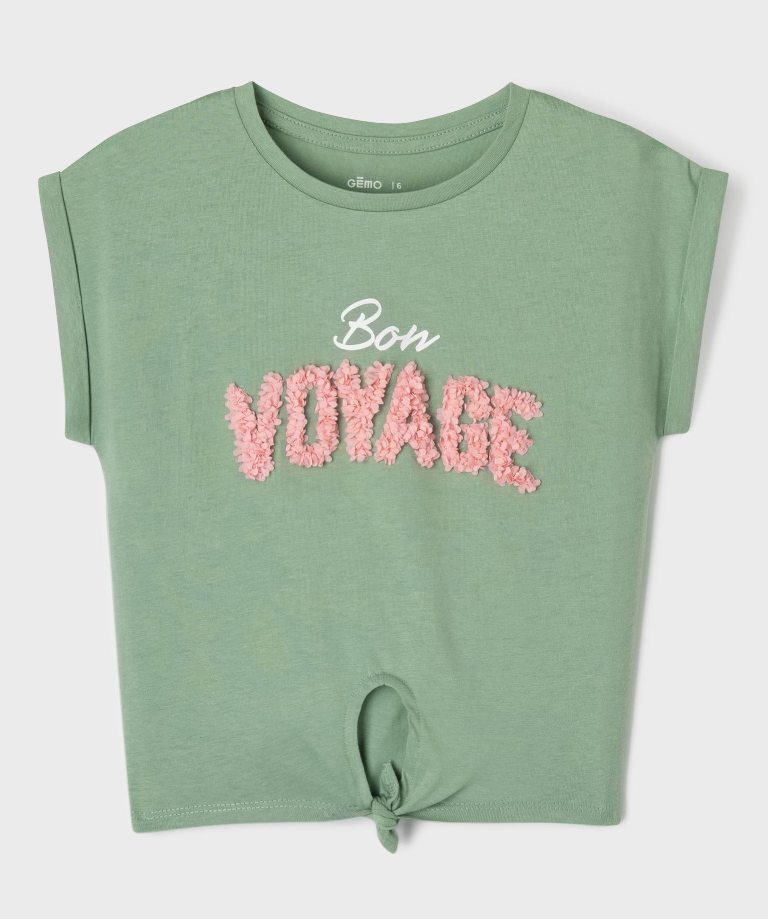 Tee-shirt manches courtes avec motif en relief et noeud fille kaki