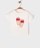 Tee-shirt manches courtes avec motif et volants bébé fille ecru
