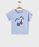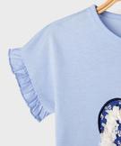 Tee-shirt manches courtes avec motif et volants bébé fille bleu