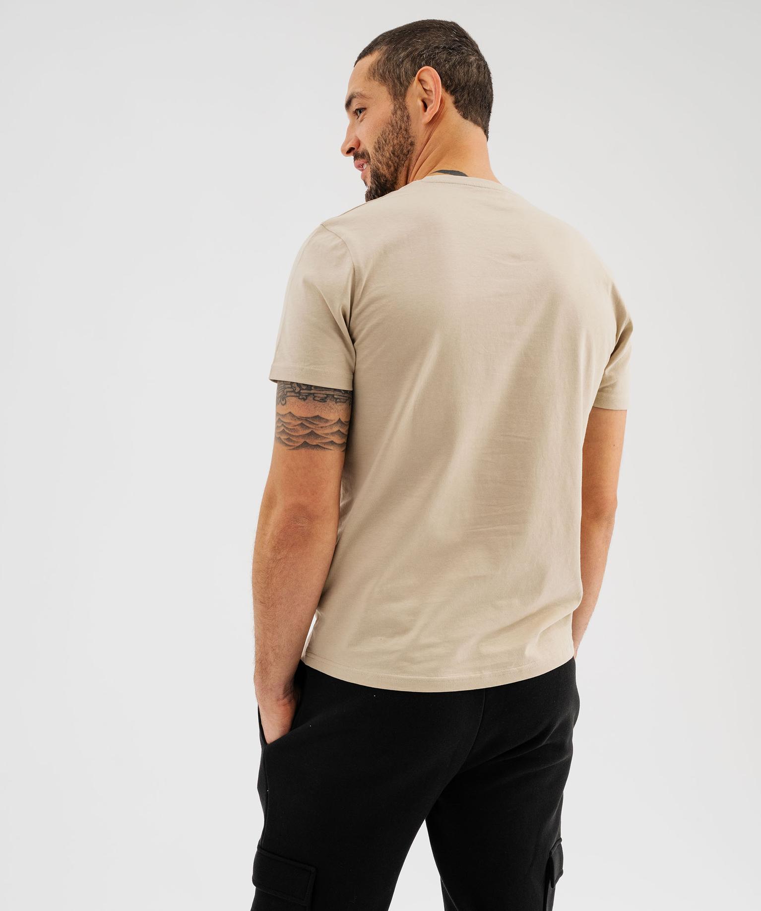Tee-shirt manches courtes avec motif poitrine homme beige fonce