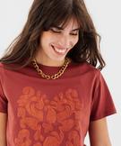 Tee-shirt manches courtes avec motif scintillant femme[MISSING] rouge fonce