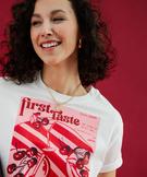 Tee-shirt manches courtes avec motifs cerises et paillettes femme blanc