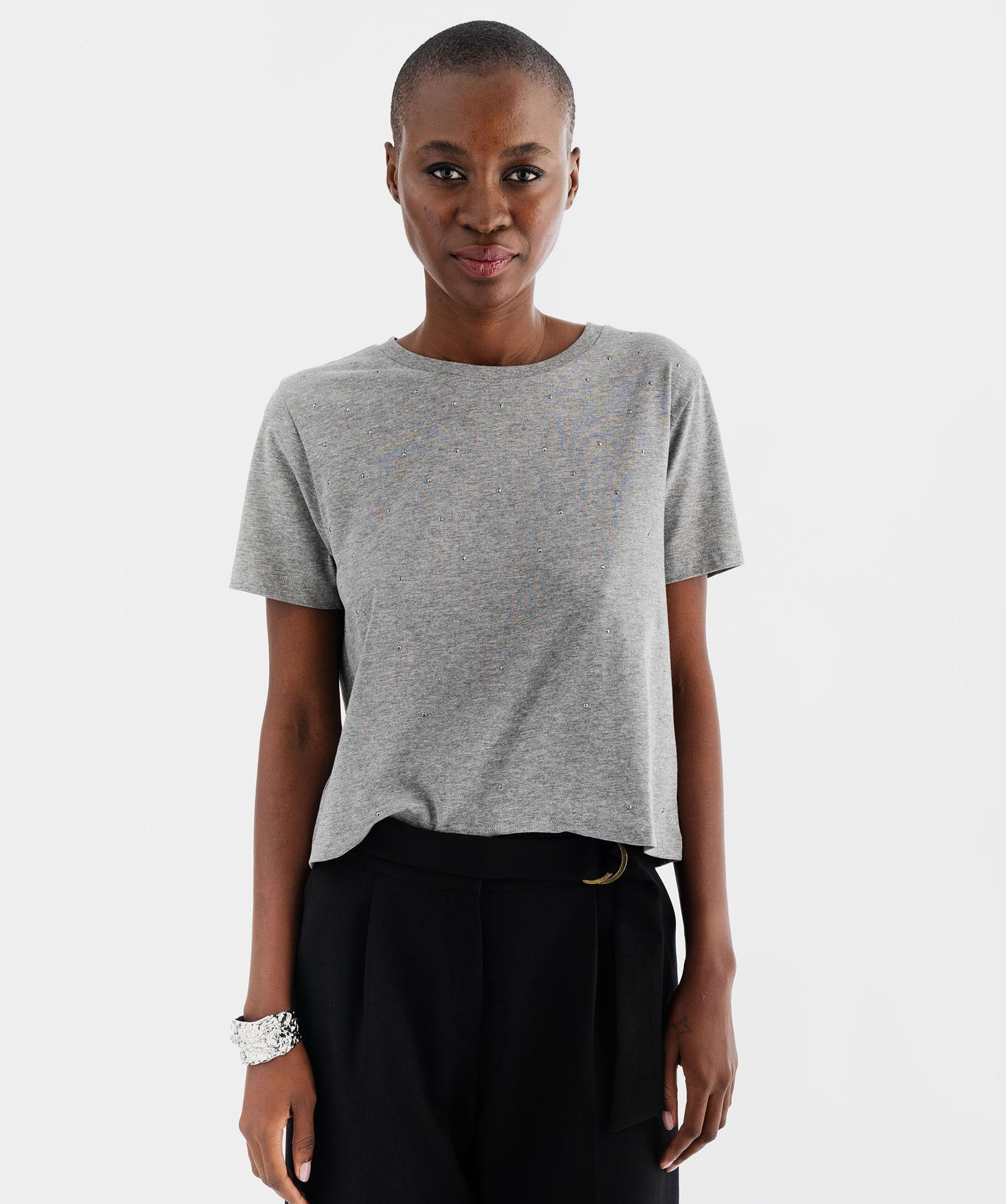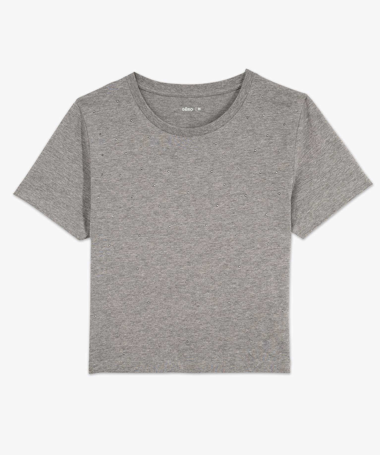Tee-shirt manches courtes avec studs femme gris
