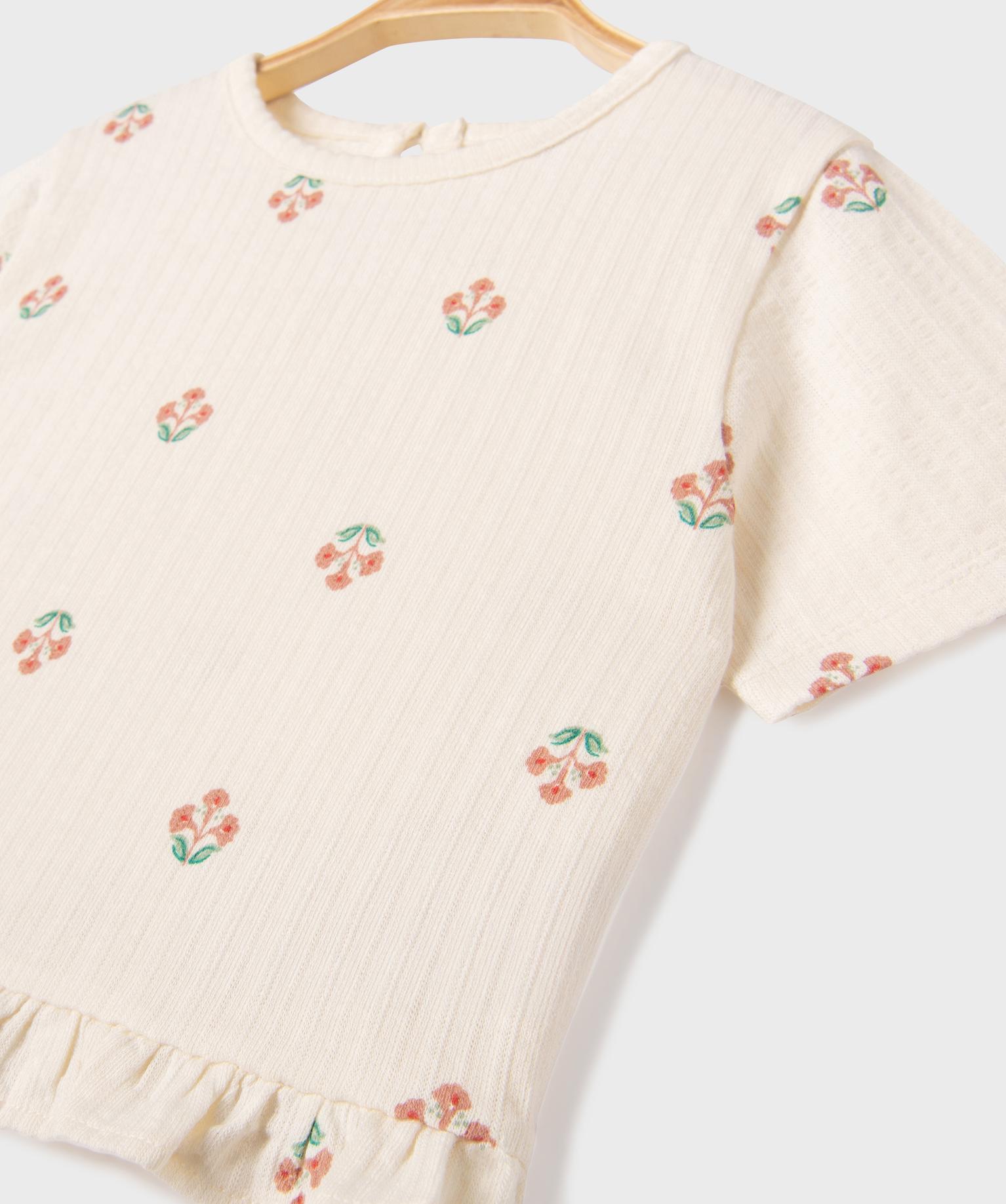 Tee-shirt manches courtes avec volant dans le bas bébé fille beige