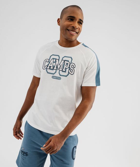 Tee-shirt manches courtes bicolore avec inscription homme - Camps United blanc