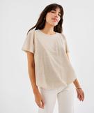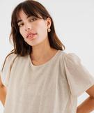 Tee-shirt manches courtes blousant en maille fluide pailletée femme[MISSING] ecru