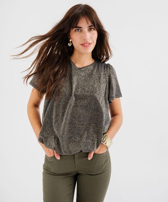 Tee-shirt manches courtes blousant en maille fluide pailletée femme marine