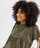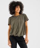 Tee-shirt manches courtes blousant en maille fluide pailletée femme noir