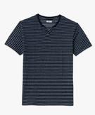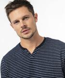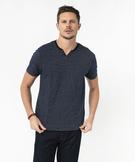Tee-shirt manches courtes col fantaisie à rayures jacquard homme marine