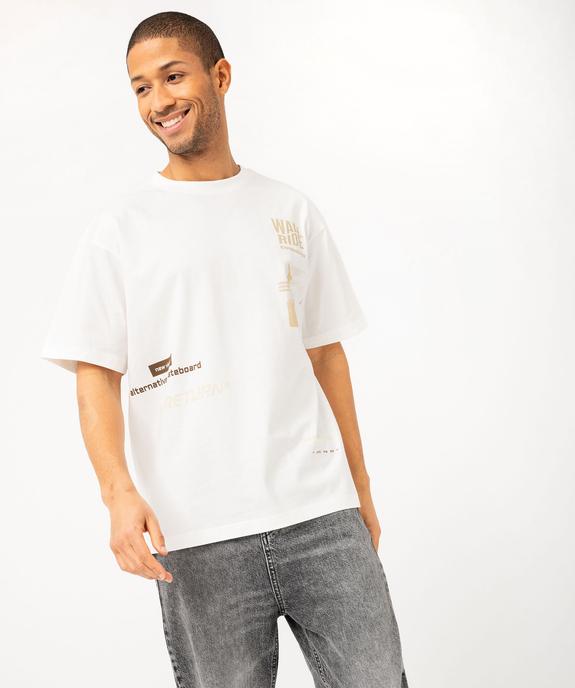 Tee-shirt manches courtes col rond imprimé skate homme blanc