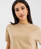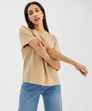 Tee-shirt manches courtes col rond uni en coton femme[MISSING] beige