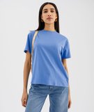 Tee-shirt manches courtes col rond uni en coton femme[MISSING] bleu