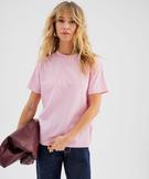 Tee-shirt manches courtes col rond uni en coton femme rose vif