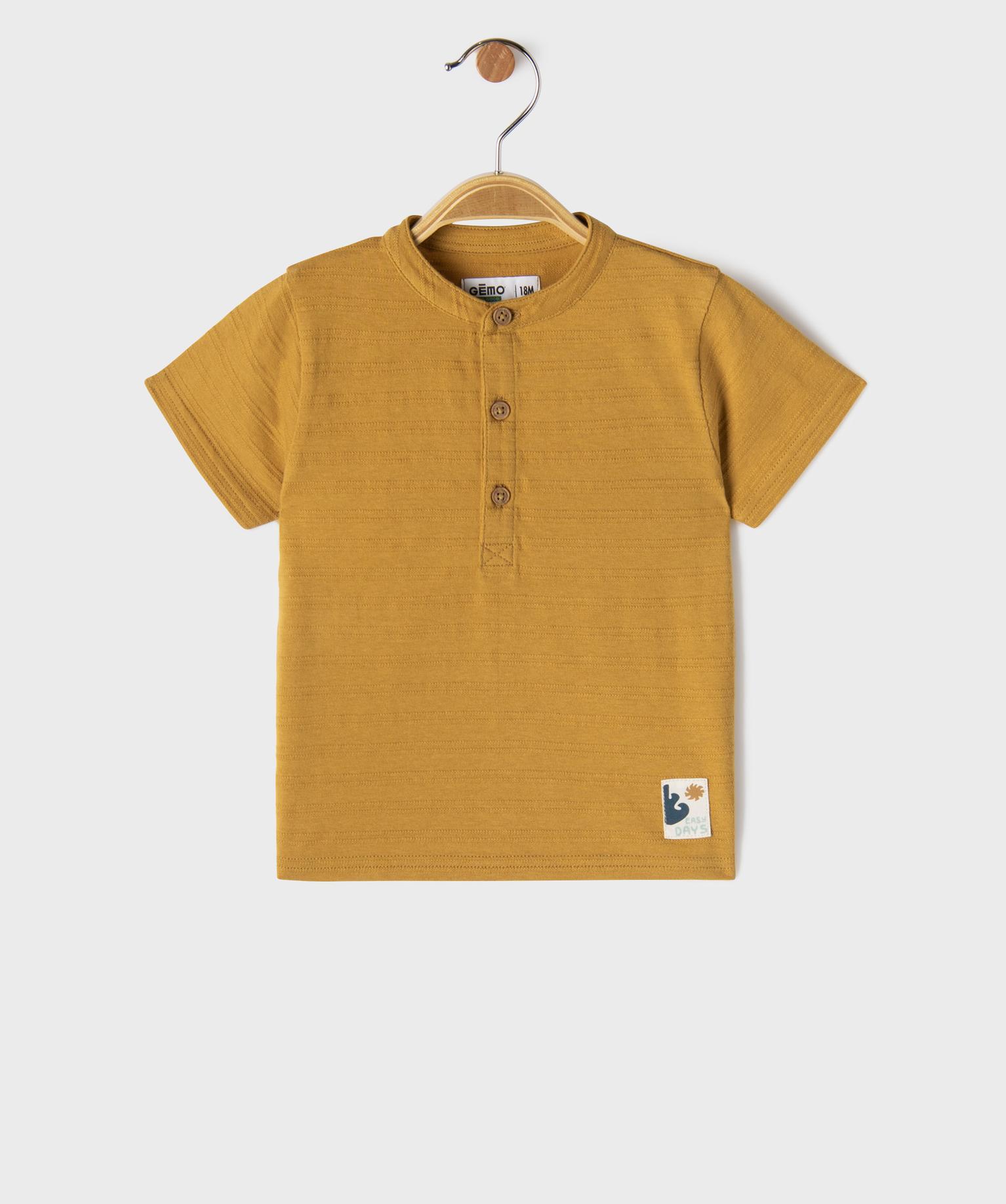 Tee-shirt manches courtes col tunisien bébé garçon jaune fonce