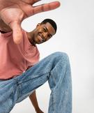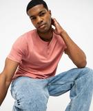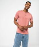 Tee-shirt manches courtes col tunisien homme rose fonce